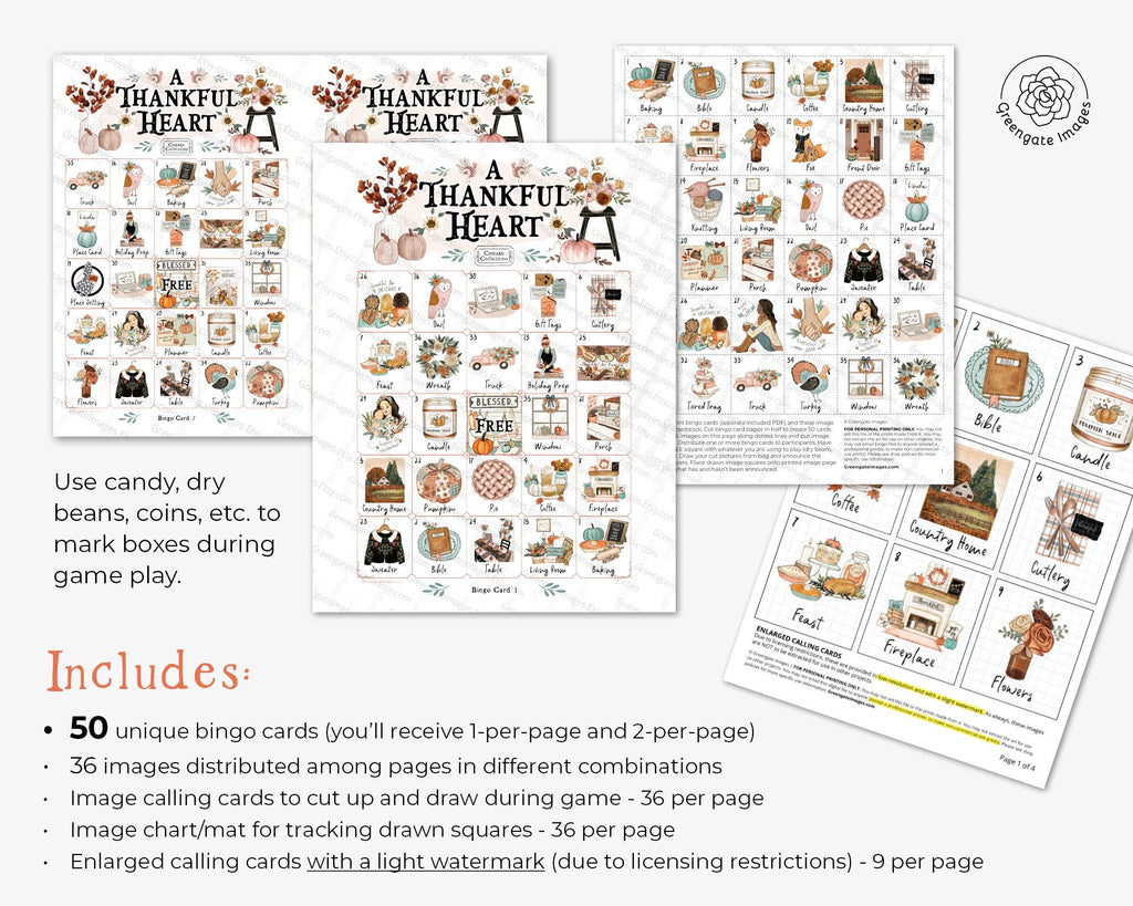 🙏🏻 A Thankful Heart Bingo for Thanksgiving celebrations – 50 Printable Cards
