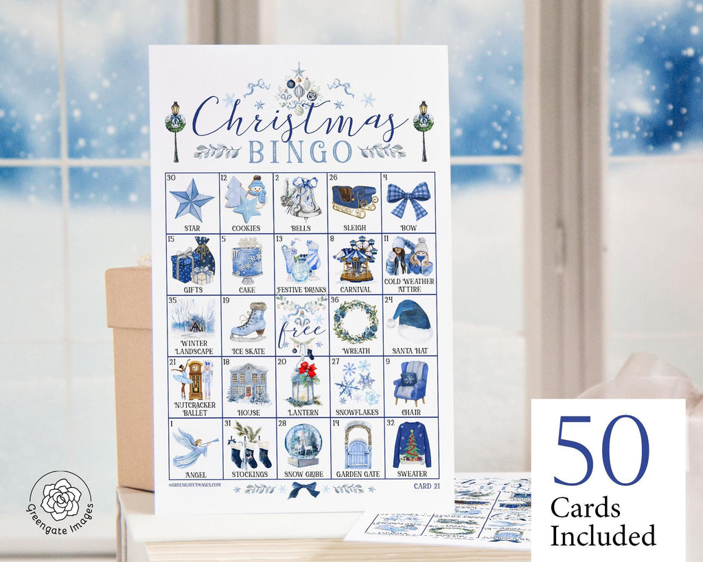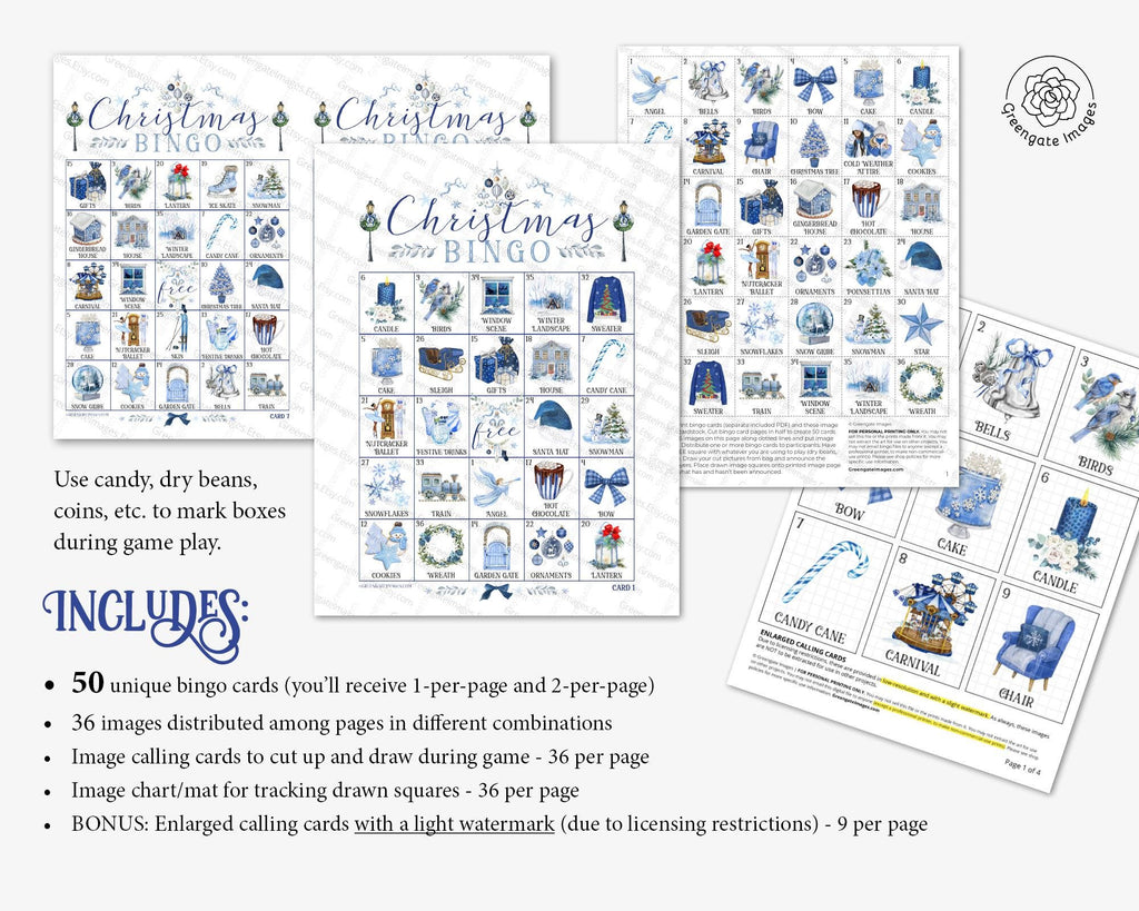 [Blue] Christmas Bingo. 50 Printable Cards.