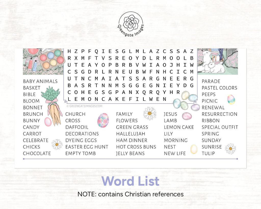 Tags: PRINTABLE downloadable activity. Pretty & charming with colorful art. All ages. Lots (45) of words. Christian terms. find a word download, large print seniors, instant download pdf, introverts puzzlers, bored tween preteen, Homeschool student, teacher game ideas, elder care center, solo focus thoughts, spring church bible, resurrection game, religious easter, hand-drawn art no ai