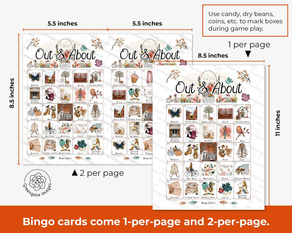 🍂 Fall Out & About Bingo – 50 Printable Cards