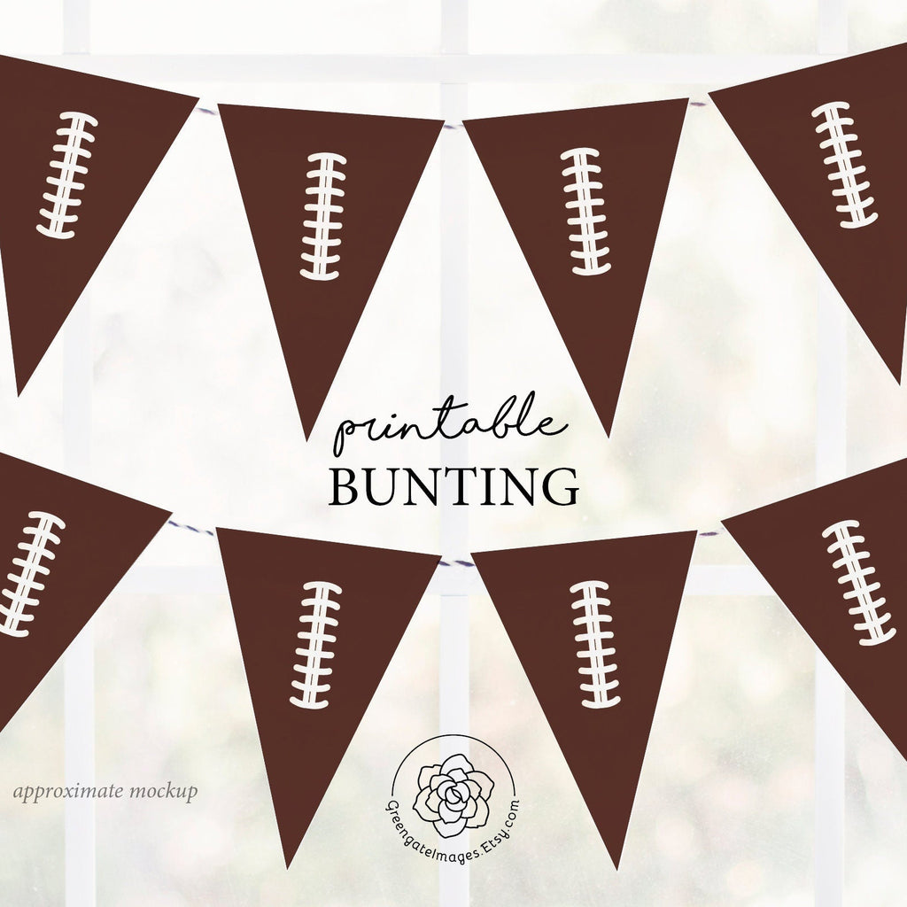 TAGS: football banner, football printable, football party, sports printable bunting, digital download, boy birthday Football Bunting, football banner, football printable, football party, printable bunting, sports party decor, boy birthday party, brown football decor, super bowl party, american football, printable decor, party printables, football party ideas