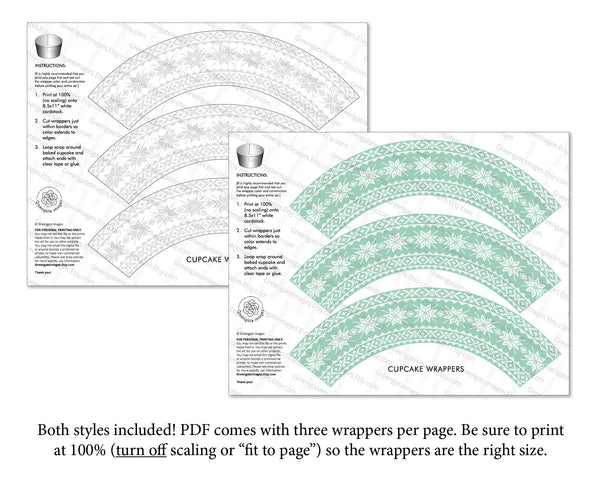 ❄ Mint green, white, and gray cupcake wrappers suitable for many occasions. These are like cozy little sweaters for your cupcakes! Delicate and pretty Scandinavian-style pattern in two colors (mint with white details and white with gray details). Both cupcake wrappers included! Perfect for your winter baby/bridal showers as well as other winter or Christmas decor.