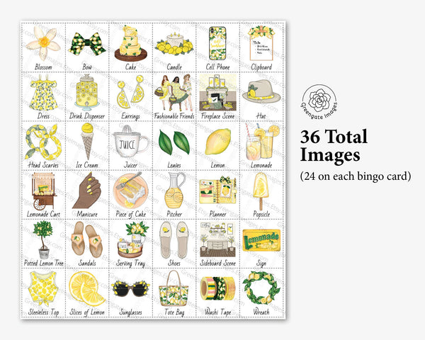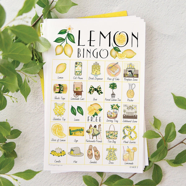 If you're throwing a lemon-themed party, this bingo game will be a highlight of the day. Fun and cheerful lemon art depicts various lemony items, including clothing, food, and decor. Perfect for Main Squeeze, Pucker Up, Little Lemon, fruit/citrus-themed, summer parties, and more. Imagery is especially cute for young women ages preteen through adulthood.