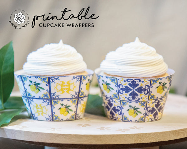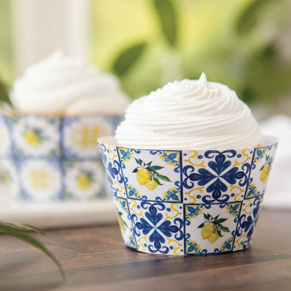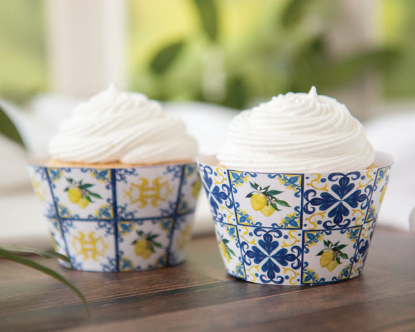 Lemons and Blue Tile Cupcake Wrapper Duo