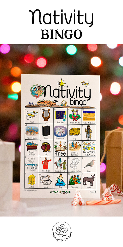 This bingo set is a great way to help remind kids and adults of the birth of Christ. A great activity for Advent, Sunday School, homeschool, or anytime. Use again and again.
