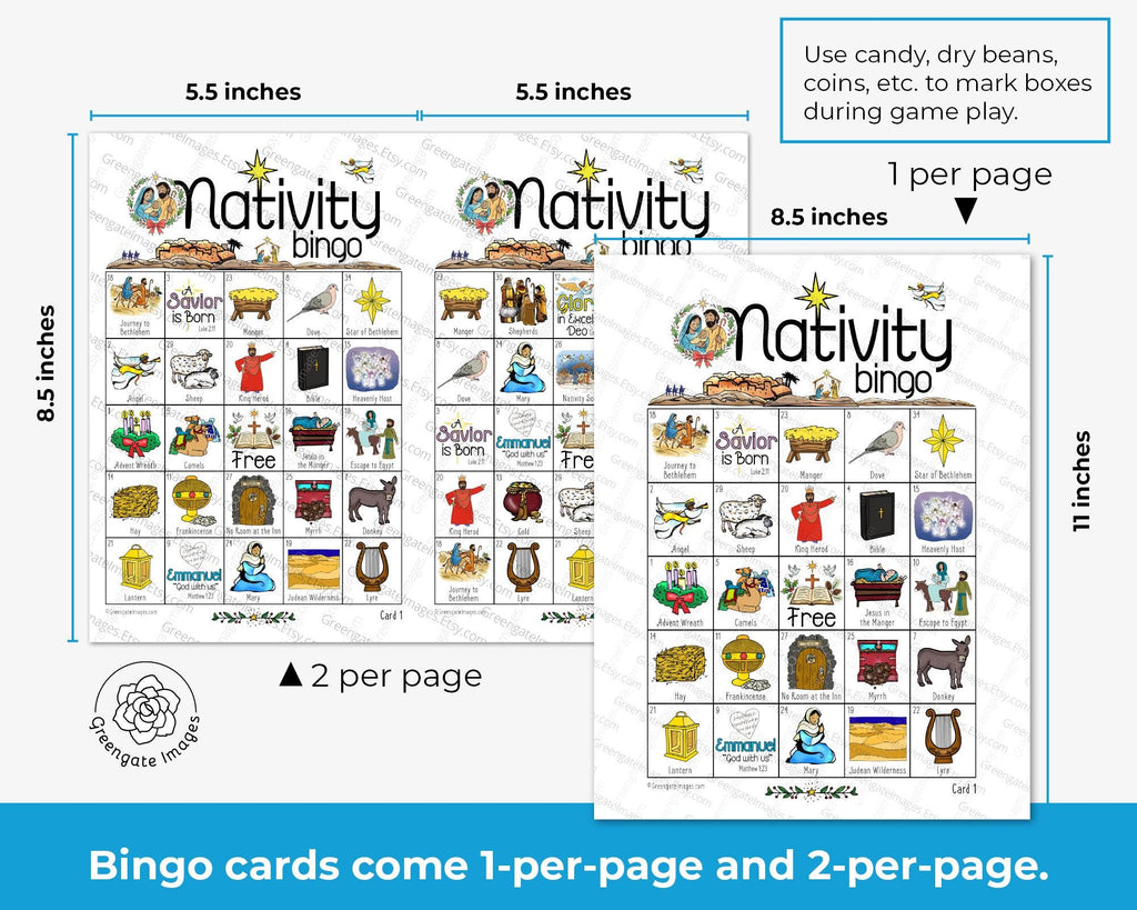 REFRESHED IN 2025: Nativity Bingo (50 unique cards) - color version