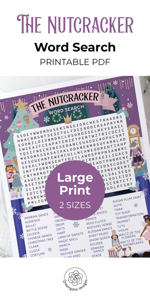 Tags: PRINTABLE downloadable activity. Cute, immersive word find for seasonal brain exercise. All ages, lots of words. find a word download, large print seniors, instant download pdf, introverts puzzlers, Homeschool student, teacher game ideas, elder care center, nostalgic downtown, advent season game, ballet dance show, nutcracker suite fun, field trip prep, holiday theatre. Mind anxiety relaxation peaceful screen-free activity. Nutcracker Suite by Tchaikovsky, Nutcracker Ballet
