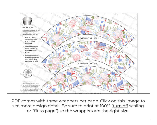Tags: PRINTABLE, 4th of July party decor, American flag, stars and stripes, red white blue, Memorial Day favor cupcake wrapper pdf, memorial day, military funeral, labor patriot event, instant download, digital file print, fourth of july party, diy unique idea, feminine female, soldiers remembrance, soft botanicals, greenery rockets, flowers floral girls