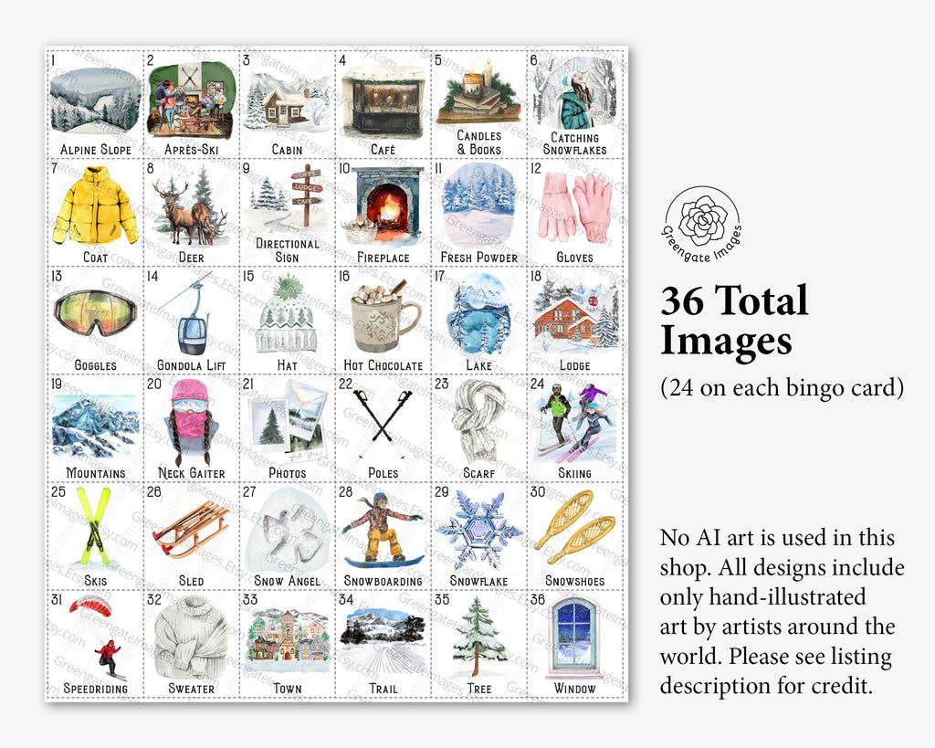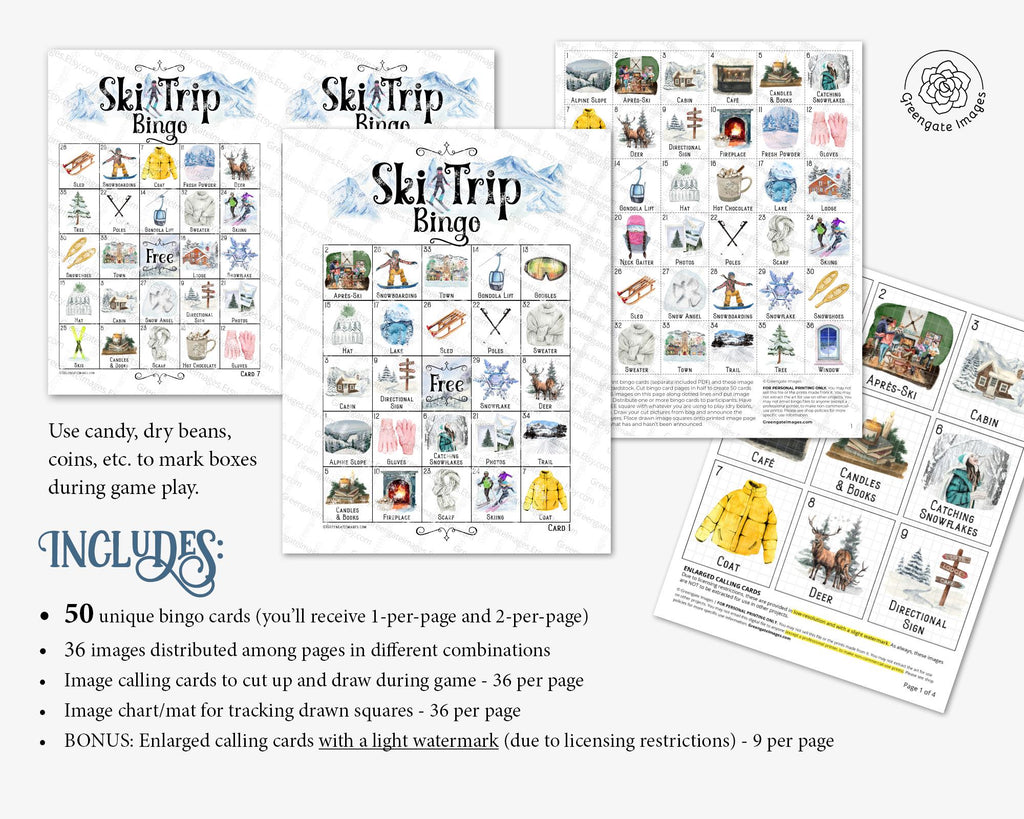 ā· Ski Trip Bingo. 50 Printable Cards.