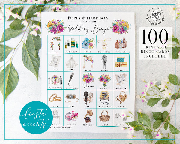 Wedding Bingo Cards - 100 card, Personalization, Fiesta